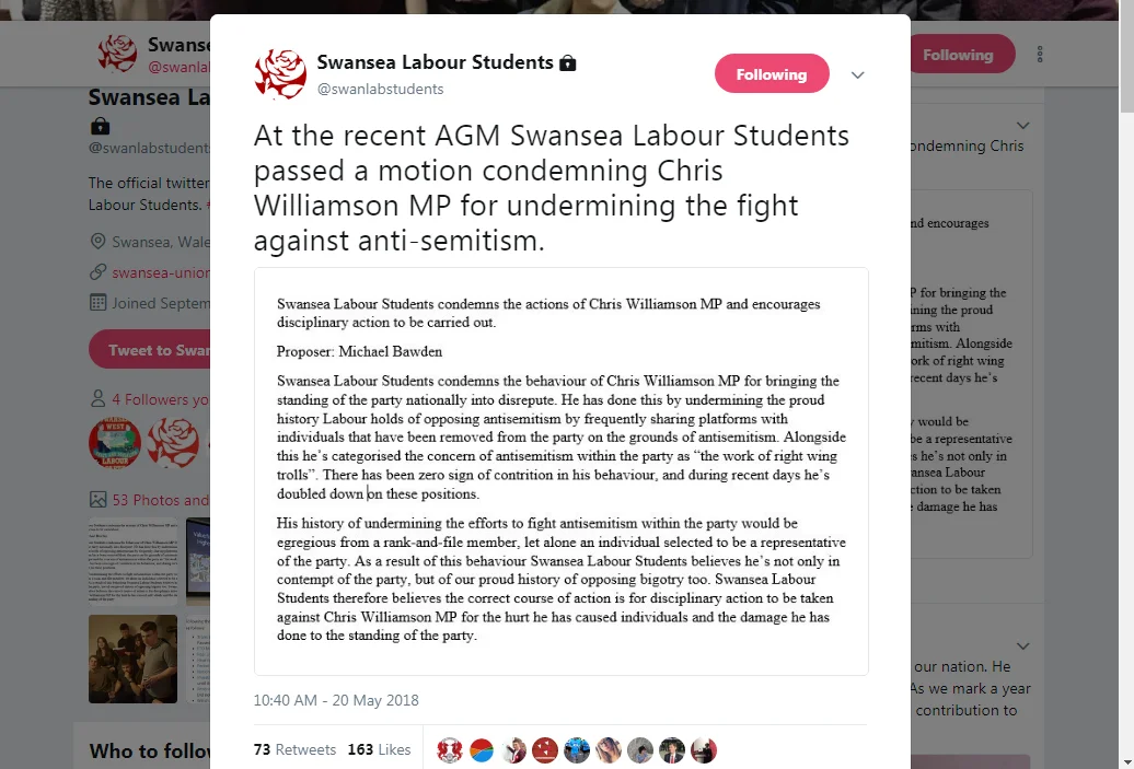 The vagueness of the statements released by these Labour Student societies, as well as the locking down of the official Twitter account of Swansea Labour Students following the release of their statement speaks volumes about how confident they are in the substance of this trumped up allegation. They don’t dare to make concrete allegations, nor will they allow any direct public questioning of their decision.
